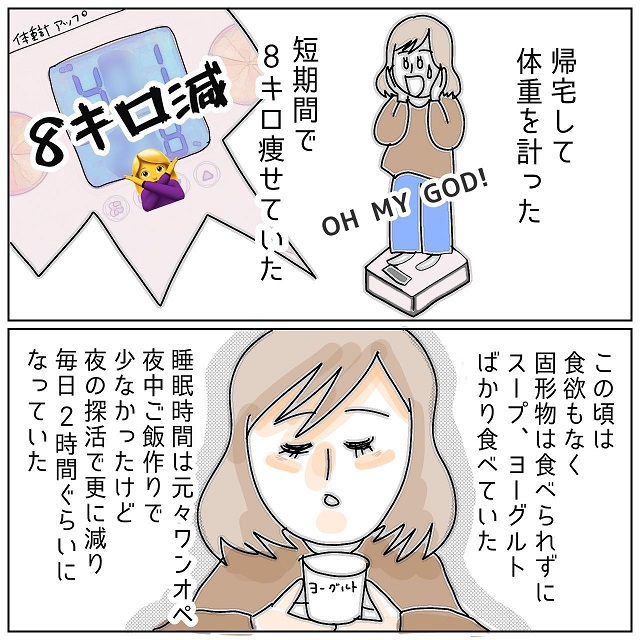 今回のお話でE子さんは、夫のモラハラ発言や浮気調査によるストレスで、8キロも痩せてしまいました。