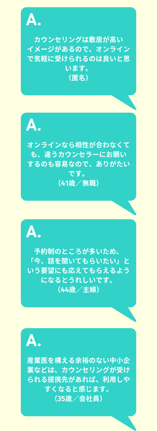 このように、「顔が見えないし見られないからこそ、安心して話せるのではないか」という声が多く寄せられていました。