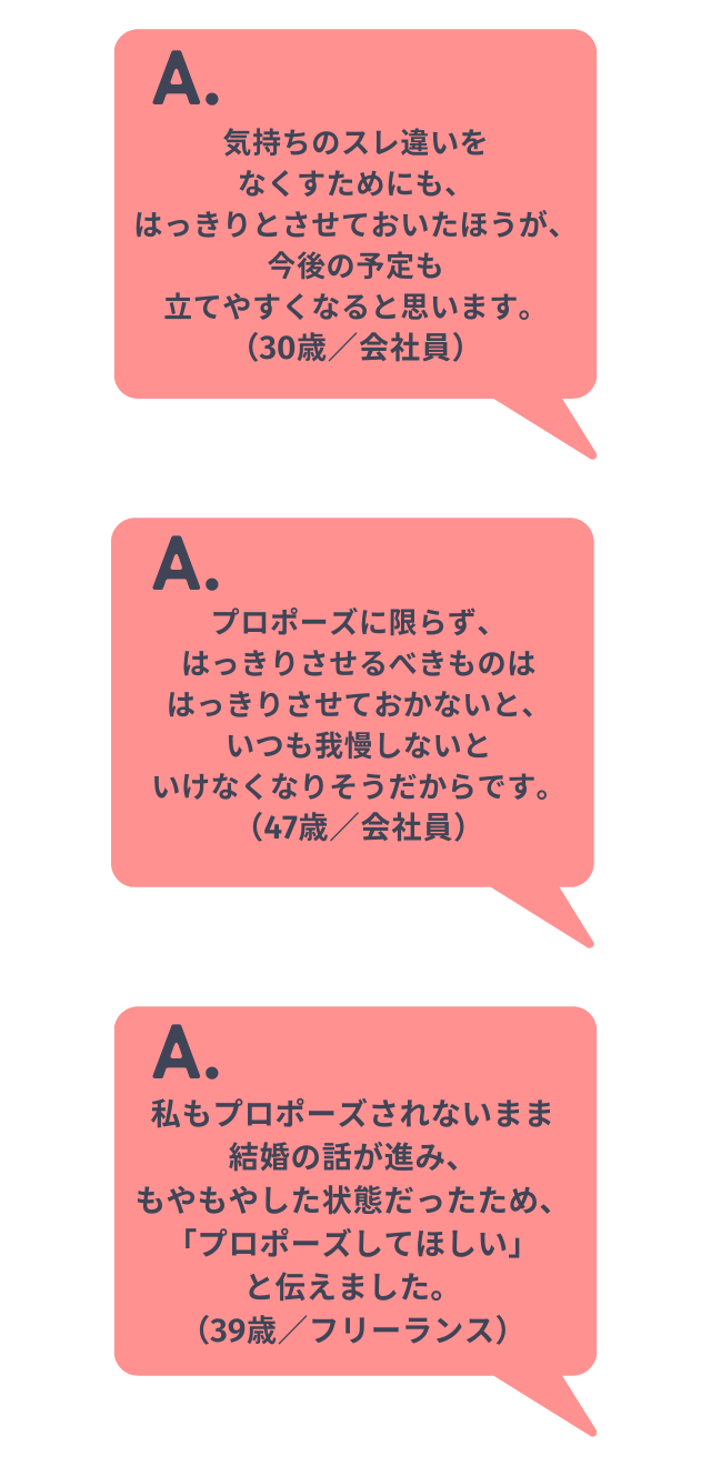 プロポーズはもちろん、何事もはっきりさせた方が良いと考える人が多いようですね。
