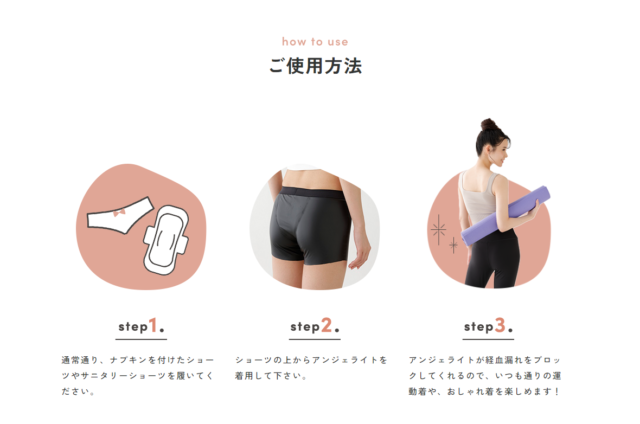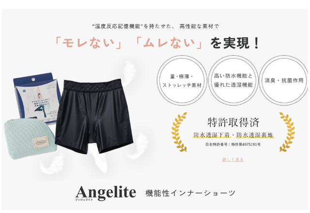 開発者の小森谷さんが経血でのモレに悩まされていたことから、「経血モレを完全にブロックできるインナーショーツがあれば、女性が抱える不安を解消できるのに」と考えるようになり、アンジェライトは誕生しました。