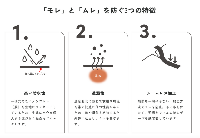 機能性インナーショーツ「アンジェライト」にはモレとムレを防ぐ3つの仕組みがあります。