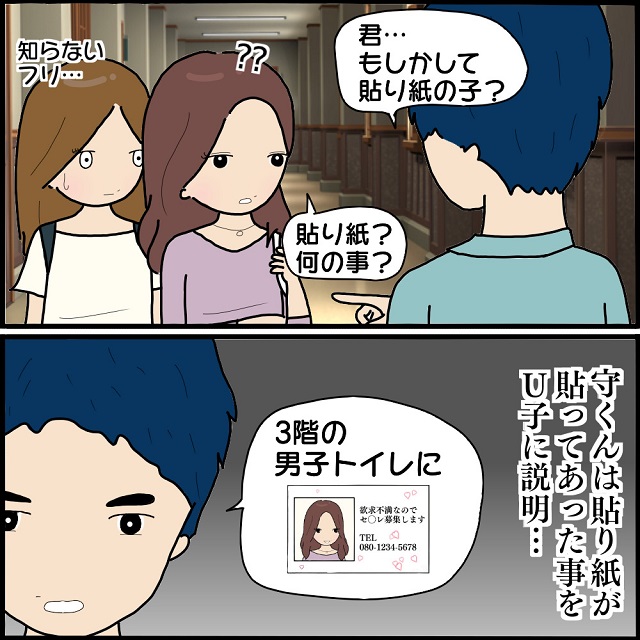 “大学の男子トイレにU子さんの写真を貼る”という卑劣な嫌がらせを実行していたモテ哉。