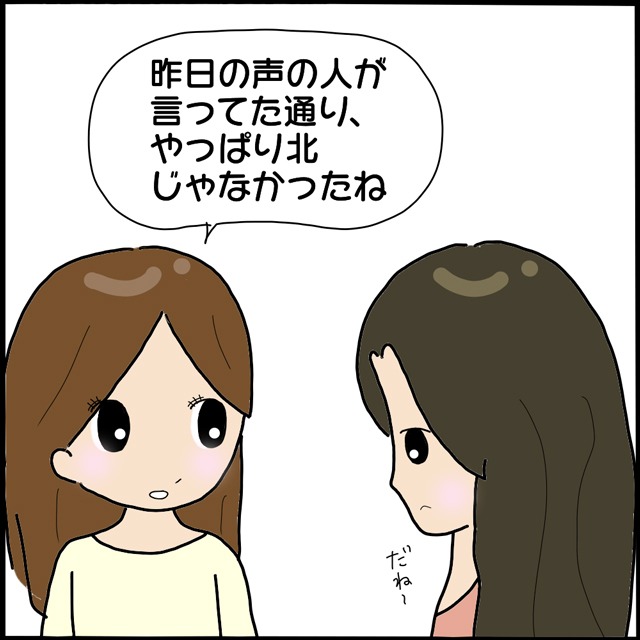 “謎の声”のおかげで正しい方角を知ることができたぱるるさんたち、ひとまずは何事もなくて一安心ですね……。