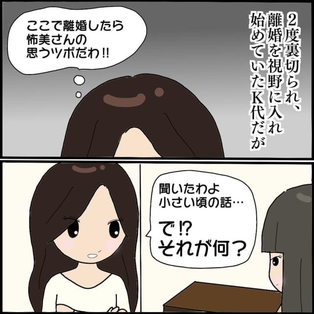 幼い頃の約束を盾に離婚を迫る怖美に反撃を仕掛けたK代さん。