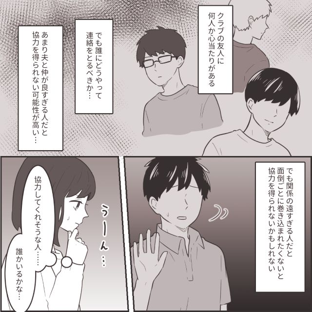 浮気相手が同じクラブの人である可能性が高いと踏み、夫の友人に協力を仰ごうと考えたのです……。
