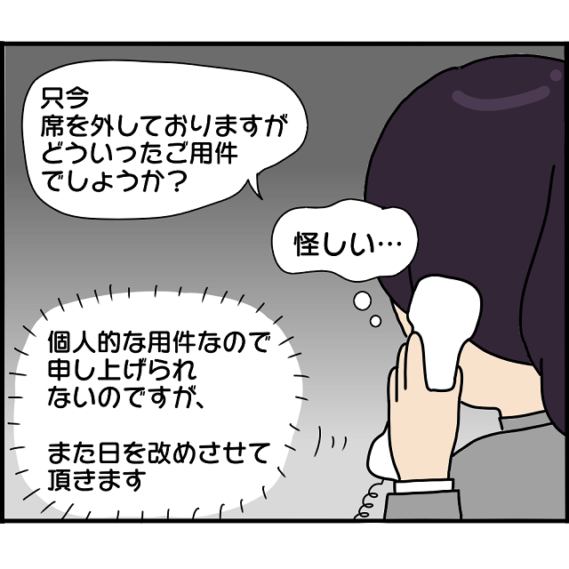 電話、郵便、そして会社……!電話に出た同僚は即座に何の電話か気づいたようです。