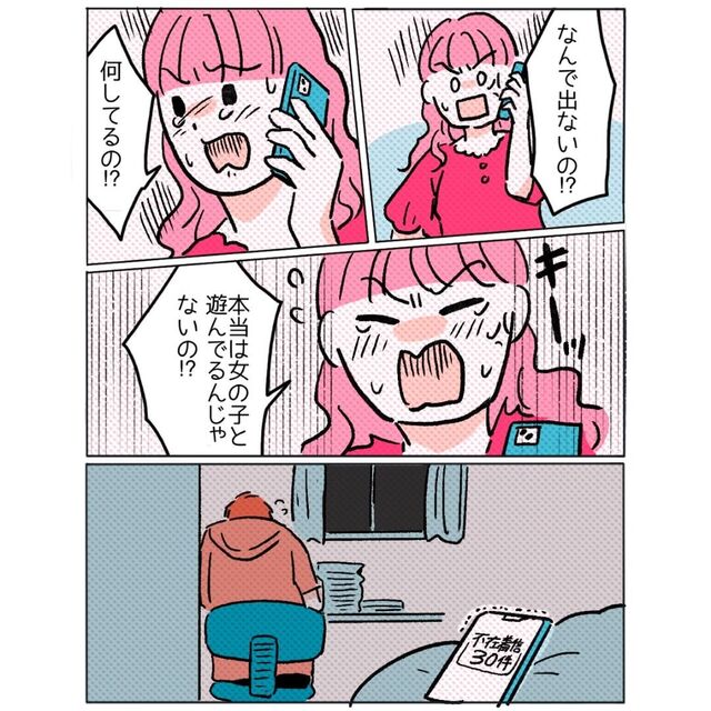 勉強に集中している主人公を、女の子と遊んでいると疑う彼女。