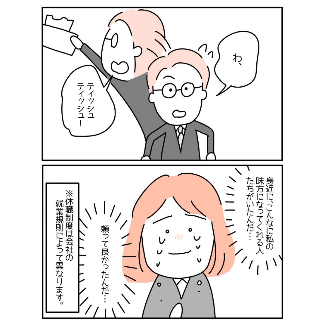 『この会社は、助けてくれる方もいて人事部もしっかりしていて、この方も休職出来て良かったなと思いました。』