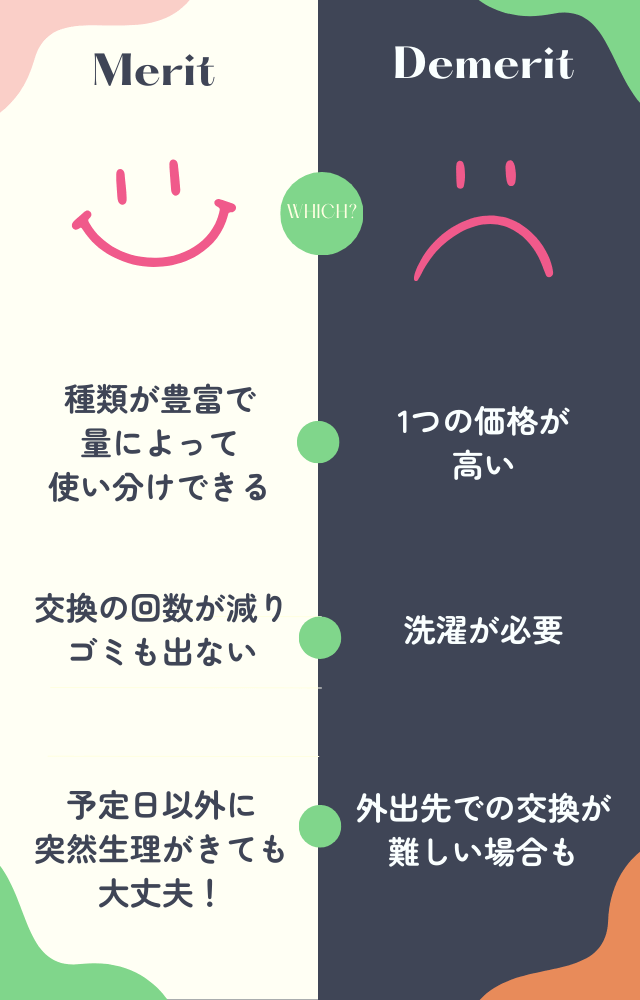 最初にかかるお金はナプキンやタンポンに比べて高くなってしまうものの、交換用に数枚買っておけば生理のたびに買わなくて済みます。