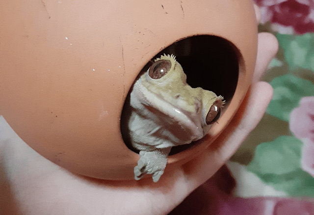 クレステッドゲッコーの男の子、琥珀くんを飼っています。