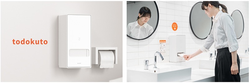 「todokuto」は、生理用ナプキンを1枚ずつ非接触で取り出せるディスペンサー。