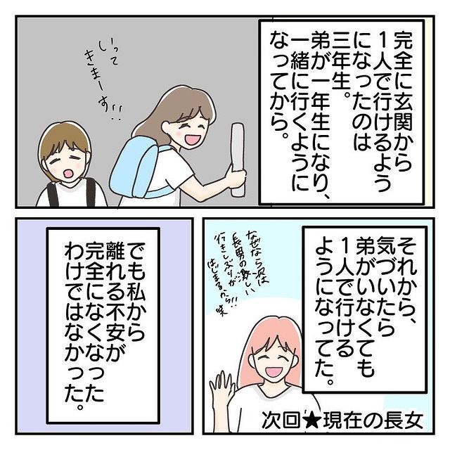 その後、弟と一緒に登校するようになったことがキッカケで、長女は1人で玄関から登校できるようになり……?