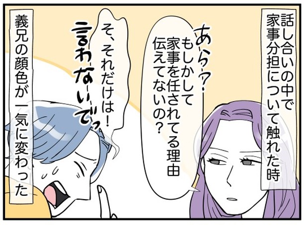義兄『うちの嫁ヤバい』頻繁に愚痴りに来る義兄に⇛私「しっかり対策しよ!」アドバイスするも無視してはぐらかし【義兄嫁は鬼嫁様!?】comic-2 2023.11.22 Wed 家事を任されている理由とは……前のページへ 何かを隠したがる義兄……次のページへ